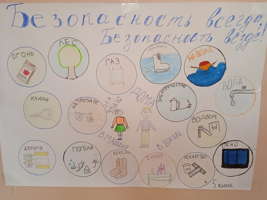 Детский травматизм и его предупреждение — очень важная и серьезная проблема, особенно в период школьных каникул, когда дети больше располагают свободным временем, чаще находятся на улице и остаются без присмотра взрослых. Конечно, полностью искоренить детский травматизм невозможно — от несчастного случая, увы, не застрахован никто. Исходя от этого в школе оформлены уголки безопасности в классах, в коридоре 1 этажа школы. И проведены конкурсы стенгазет среди 5-11 классов и конкурсы рисунков среди 1-4 классов. Где дети с интересом передавали свои знания полученные на беседах и на классных часах.