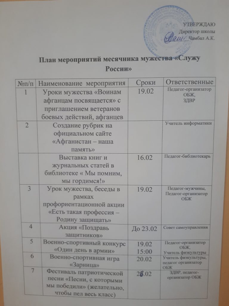 19.02.2021г проведен урок-мужества для мальчиков 5-9 классов с приглашением Председателя администрации сумана Арыг-Бажынский Ондар Ш.А. Охват 36 учащиеся, 3 педагога, 1 гость.