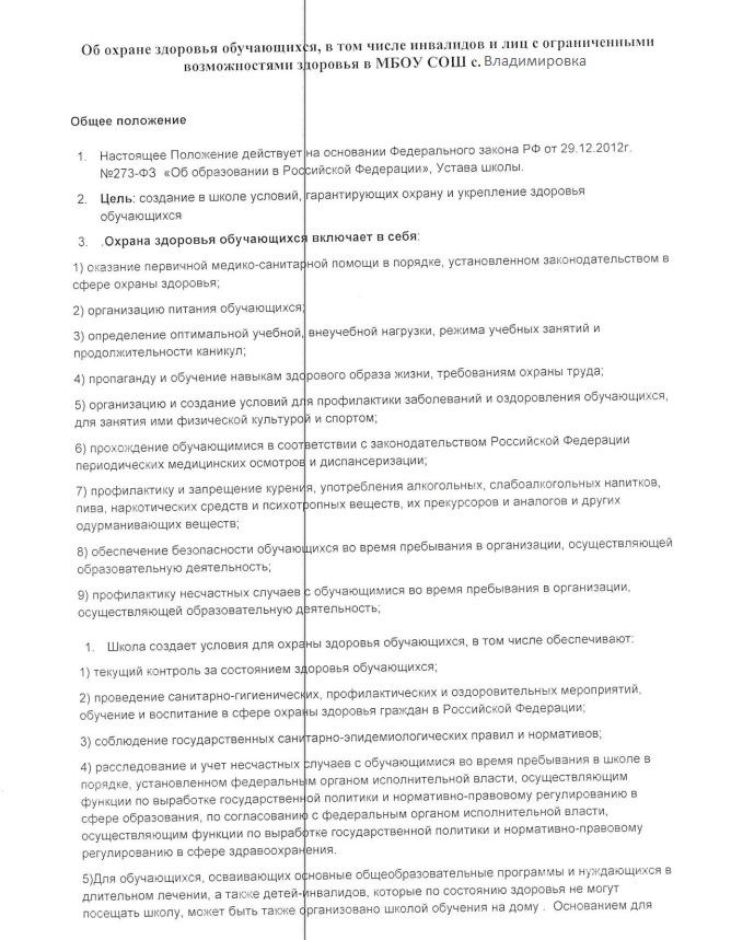 Информация об объектах, приспособленных для использования инвалидами и лицами с ограниченными возможностями здоровья в МБОУ СОШ с. Владимировка.