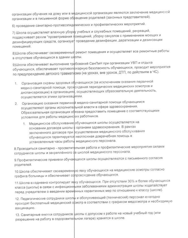 Для оказания доврачебной первичной медицинской помощи в школе оборудованы два медицинских кабинета. Медицинские кабинеты оснащены оборудованием, инвентарем и инструментарием в соответствии с СанПиН 2.4.2.2821-10. Первичная медицинская помощь осуществляется с 08.00 до 18.00. Медицинские работники регулярно проводят профилактические мероприятия, вакцинации и ежегодная диспансеризация обучающихся. Медикаменты, необходимые для лечения приобретаются в достаточном количестве и с учетом необходимой потребности.