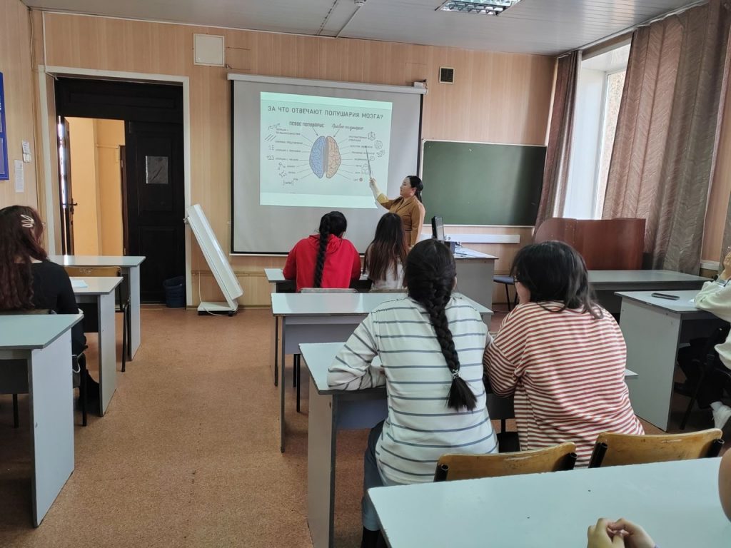 Ученики 11 класса с классным руководителем, учителем русского языка и литературы Анной Шиловной Салчак посетили мастер-класс «Занимательная физиология человека» в рамках мероприятий Дня открытых дверей Тувинского государственного университета. Мероприятие было организовано преподавателями кафедры анатомии, физиологии и бжд.