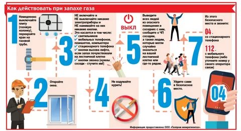 - Не поворачивать вентили газовой плиты и колонки;