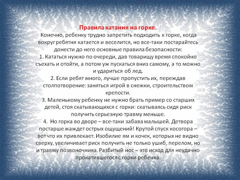 - проявляйте осторожность и соблюдайте все требования безопасности, находясь с детьми на игровой или спортивной площадке;